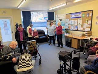 This session was supported by the Angus Falls Service with Joyce Simpson, the Falls Assessor spending time with those trying on the slippers and giving advice. Joyce says “ The Angus Falls Service is for anyone who has a history of falls, has a fear of falling, feeling unstable or has a low bone density and or a family history of osteoporosis”.